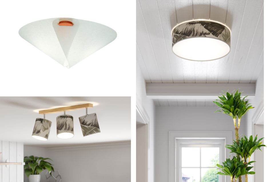 Lunopalista valmistetut lampunvarjostimet ja puu ovat hieno yhdistelmä kattovalaisimeen, jos sisustukseen halutaan ripaus japandi-tyyliä. Maalaisromanttiseen sisustustyyliin sopivat puolestaan paperivarjostimet, joissa on kukkakuvioita. Myös kattovalaisimissa erilaiset harmaan ja ruskean sävyt ovat suosittuja.