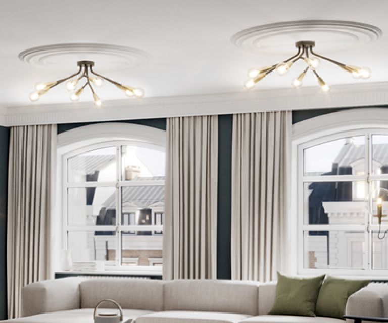 Esimerkissä vanhat valonlähteet on korvattu moderneilla valaisimilla, joissa on sisäänrakennetut, kiinteät ledit. Tällainen ratkaisu sopii sisustajille, jotka toivovat valaistukseltaan vaivattomuutta ja haluavat samalla päivittää kodin ulkonäköä. Vielä nopeammin säästöt näkyvät tilanteessa, joissa valaisinkannalla varustettuihin valaisimiin hankintaan uudet led-lamput.