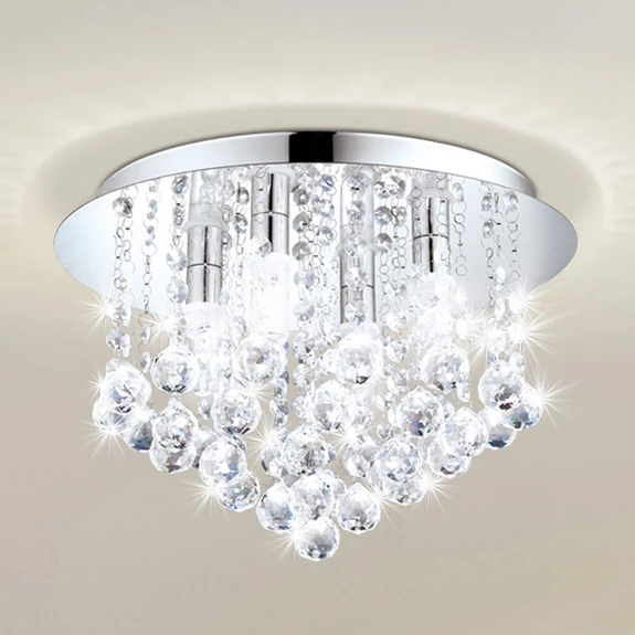 Pyöreä, kromattu kattolevy muodostaa Basis Almonte LED-kattovalaisin, josta roikkuu lukemattomia ketjuja, joissa on pieniä, tasaisia ja suurempia pallomaisia, kristallilasista tehtyjä leikattuja elementtejä, kapenevat kohti keskeltä pohjaa. Pistokkeissa olevat G9-LED-lamput saavat kiteet kimaltelemaan ja tarjoavat samalla lämpimän valkoisen perusvalaistus huoneeseen. Kristallielementtien peilaus kromatulla kattoelementillä saa Almonte- kattovalaisin näyttämään vielä häikäisevämmältä.