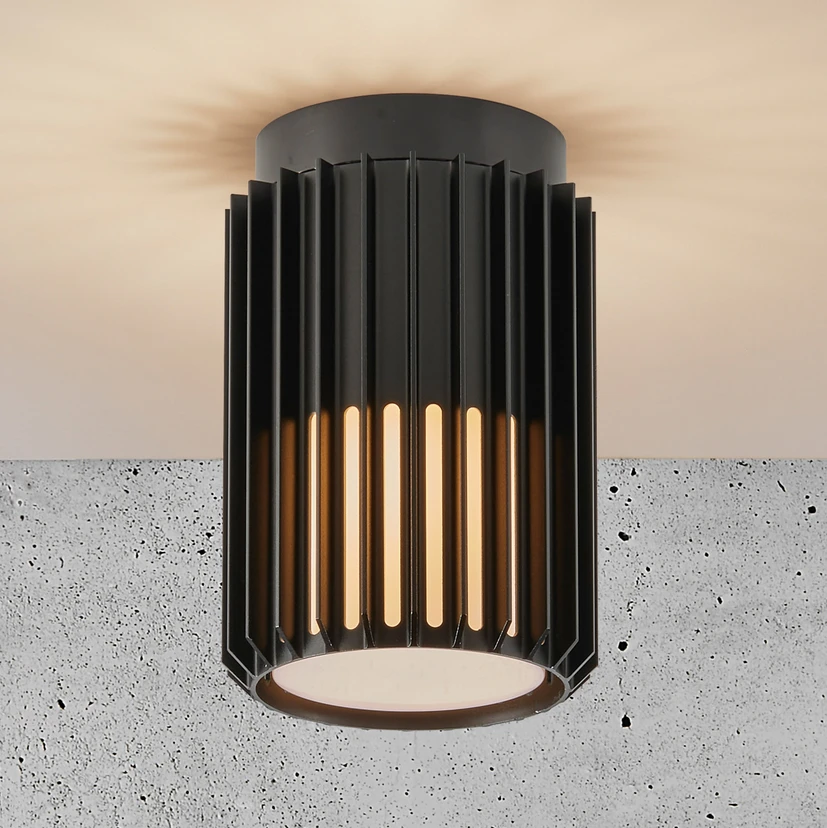 Ulkokattovalaisin Aludra by Jacob Jensen DesignAludra-kattovalaisin ulkokäyttöön on valmistettu karkaistusta, anodisoidusta alumiinista, ja lampunpidin on suojattu tuulelta ja säältä muovisella diffuusorilla. Sarjan muotoilu on pyöreä, ja hienojen lamellien kautta valo loistaa alaosastaan kaikkiin suuntiin ja tarjoaa käytännöllisen ja innovatiivisen suuntavalon. Valaisimen muotoilu on peräisin tunnetulta Jacob Jensen Designilta ja sen valmistaa tanskalainen Nordlux.