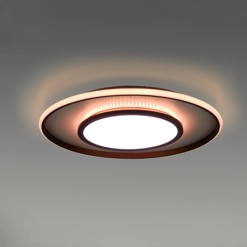 Arenda LED-kattovalaisin on moderni ja innovatiivinen valonlähde, jossa on lukuisia säätömahdollisuuksia. Se koostuu kahdesta erikokoisesta valorenkaasta ja mustasta rengaskehyksestä, jolla saavutetaan upea ulkonäkö. Valo tuotetaan LED-valoilla, jotka voidaan kytkeä toisistaan riippumatta, mikä mahdollistaa sekä suoran että epäsuoran valaistuksen. Toimitukseen sisältyvällä IR-kaukosäätimellä voidaan kytkeä eri valonlähteitä sekä himmentää tai muuttaa valon väriä tai lämpötilaa. Näiden asetusvaihtoehtojen lisäksi valaisimessa on myös muistitoiminto.