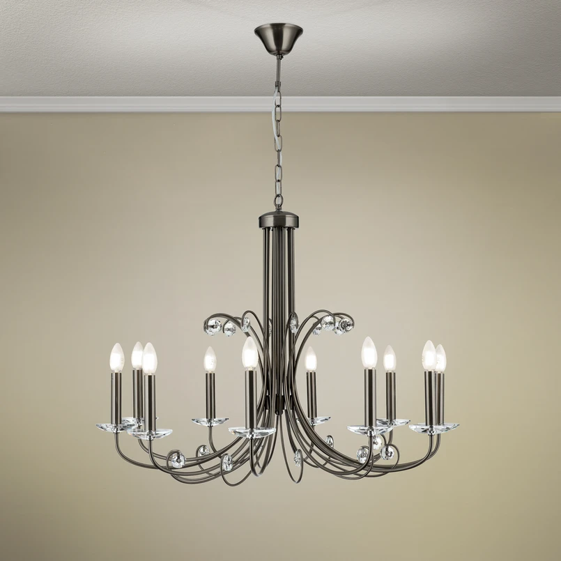 Ariane kattokruunu, nikkeli, Ø 92 cm, kristalli, 10 valoa.
