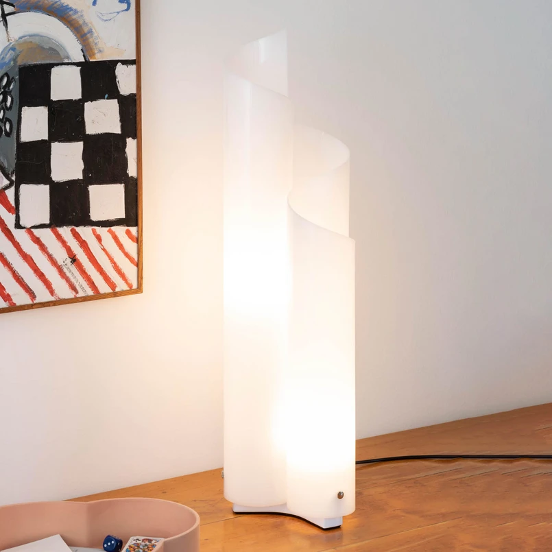 Mezzachimera-lattia-, lattia- ja pöytävalaisin tekee vaikutuksen erittäin miellyttävällä valoteholla ja on myös visuaalisesti poikkeuksellisen näköinen. Se koostuu kuumamuokatusta metakrylaatista, joka saa ylöspäin suuntautuvan aallon muodon. Kierukoiden väliin sijoitettujen lamppujen valo leviää ja suodattuu ympäristöön, ja myös itse keho on tehokkaasti lavastettu.