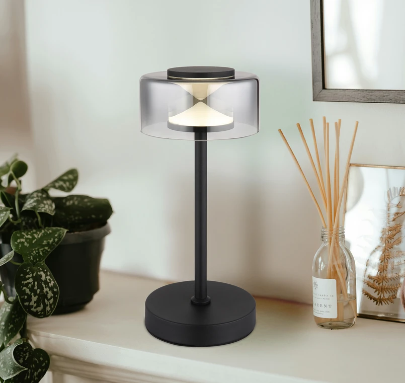 Belinda LED-pöytävalaisin, savunharmaa, korkeus 33 cm, metallia