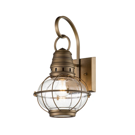 Bridgepoint-ulkoseinävalaisin - koristeellinen lyhty Bridgepoint-ulkoseinävalaisimen ilme on merellinen sekä antiikkinen. Bridgepoint on valmistettu messinkiseksi viimeistellystä alumiinista ja kirkkaasta lasista, jossa on siemenjyväinen rakenne. Valo säteilee strukturoidun lasin läpi joka puolelle ja antaa pehmeän tunnelmavalaistuksen. Bridgepoint-ulkoseinävalaisin näyttää erityisen esteettiseltä, kun valonlähteenä käytetään hehkulamppua, sillä sen voi tilata lisävarusteiden kautta.