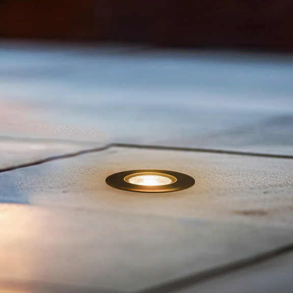 LED-lattia-asennusvalaisin Hybride Flat, jossa on kattoasennusjouset LED-lattia-asennusvalaisimessa Hybride Flat on matala asennuskorkeus, joten sitä voidaan käyttää myös kattoon upotettuna valaisimena. Kattoon kiinnittämiseen sopivat jouset sisältyvät toimitukseen. Kotelo on valmistettu korkealaatuisesta, ruostumattomasta krominikkeliteräksestä (V4A ruostumaton teräs). Peitteenä käytetään vakaata läpinäkyvää lasia. Tehokkaat LEDit säteilevät voimakasta valoa ylöspäin kapealla sädekulmalla - tai alaspäin, jos Hybrid Flat asennetaan kattoon, joten se soveltuu erinomaisesti julkisivuvalaistukseen, suunnistusapuvälineeksi poluilla tai yleispistevalaisimeksi ulkoilmassa.