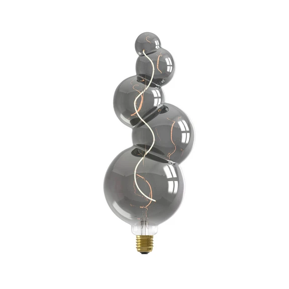 Himmennettävä LED-valaisin Alicante E27 4W by Calex titaaninvärisellä pinnoitteellaTämän LED-valaisimen muotoa voisi verrata saippuakuplien sarjaan. Suurista pieniin, kuplat asettuvat riviin muodostaen pitkän, mielenkiintoisen valaisimen, jossa filigraaniset LED-säikeet tuottavat erittäin viihtyisää valoa.Ekstravagantisti muotoiltu valaisin, joka on tarkoitettu erityisesti käytettäväksi valaisimissa, joissa ei ole varjostinta.