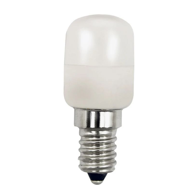 Lämminvalkoinen LED-jääkaappilamppu E14 2,3W, sädekulma 300°Tämä pieni E14-ledilamppu sopii jääkaappeihin tai koristeellisiin valaisimiin. Perinteisiin jääkaappilamppuihin verrattuna se on kirkkaampi ja paljon taloudellisempi, ja se tuottaa myös paljon vähemmän lämpöä. Valo säteilee 300°:n sädekulmassa.- Elinikä 25 000 tuntia- Valon väri lämmin valkoinen (2700 K)- Vertailuarvo 19W