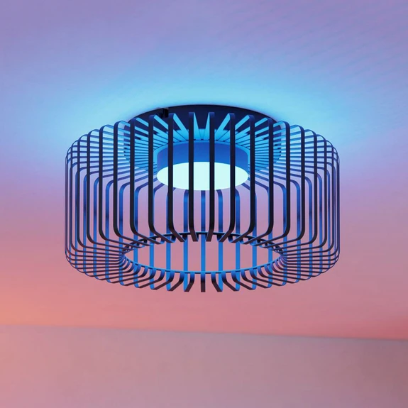 Ginestrone-Z LED-kattovalaisin, Eglo connect, CCT, RGB Connect.z-älykotisarjan Ginestrone-Z LED-kattovalaisimessa on pyöreä lampunvarjostin, joka on valmistettu mustista litteistä metalliliuskoista ja jossa on sisäinen LED-profiili valkoisen muovin takana. Metalliliuskat luovat kiehtovan valon ja varjon vuorovaikutuksen heti, kun valo kytketään päälle. Integroidut LEDit antavat miellyttävää valoa halutulla tavalla. Voit valita lämpimän valkoisen, neutraalin valkoisen ja kylmän valkoisen valon sekä erilaisia RGB-valon värejä. Valoa ohjataan ilmaisella sovelluksella (AwoX Home Control) ja se mahdollistaa pääsyn muihin käteviin toimintoihin, kuten himmennykseen, ajastimeen, läsnäolosimulaatioon ja moniin muihin toimintoihin. Kattovalaisinta ohjataan Bluetoothin ja ZigBee 3.0:n kautta, ja sitä voidaan ohjata myös yhteensopivien puheavustajien kautta. Vaihtoehtona sovelluksen kautta tapahtuvalle ohjaukselle älykästä kattovalaisinta voidaan ohjata myös erikseen saatavalla kaukosäätimellä. Musta valaisin sulautuu saumattomasti moderniin sisustukseen. Se tarjoaa modernin muotoilun mihin tahansa huoneeseen - olipa kyseessä keittiö, olohuone, makuuhuone tai eteinen.