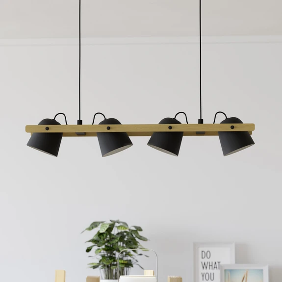 Hornwood-Z LED-kattovalaisin, Eglo connect, RGB, CCT Hornwood-Z LED-kattovalaisin on osa connect.z-valaisinsarjaa. Valaisinta voidaan ohjata ilmaisella sovelluksella (AwoX Home Control) ja erikseen saatavalla kaukosäätimellä, ja neljää integroitua spottia voidaan säätää yksilöllisten valaistustarpeiden mukaan. Valaistuksen voi valita lämpimän valkoisen, yleisvalkoisen ja päivänvalon valkoisen valon tai erilaisten RGB-valovärien välillä, joten jokaiseen tilanteeseen voidaan valita sopiva valaistus, ja valaistusta voidaan myös himmentää. Sovelluksen kautta pääsee käyttämään myös muita käteviä toimintoja, kuten ajastinta, diskotilaa, läsnäolosimulaatiota ja monia muita. Valoa ohjataan Bluetoothin ja ZigBee 3.0:n kautta, ja sitä voidaan ohjata myös yhteensopivien puheavustajien kautta. Kestävästä kumipuupuusta ja mustaksi maalatusta teräksestä valmistettu riippuvalaisin sopii erinomaisesti ruokasaliin, keittiöön tai olohuoneeseen. Valaisin on yhteensopiva connect.z-sarjan lisävarusteiden kanssa.