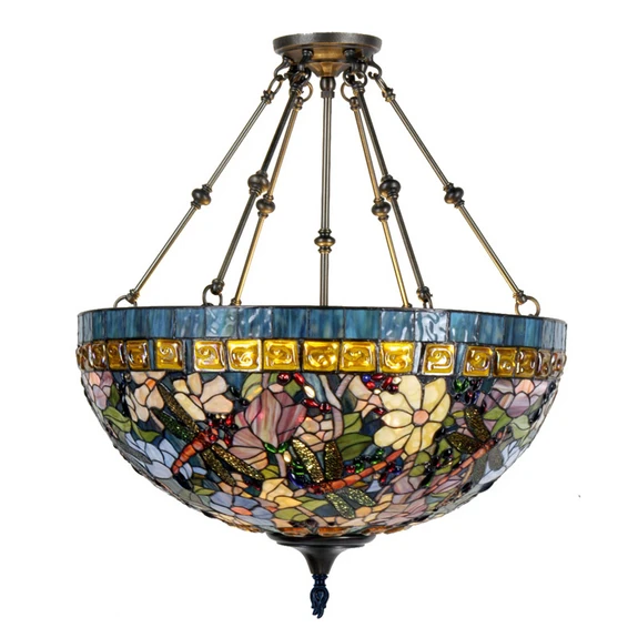 Kukkamallinen Gloria-riippuvalaisin lasivarjostimella Tiffany-mallissaGloria-riippuvalaisimessa on koristeellinen lasivarjostin, jonka halkaisija on vaikuttava 70 cm. Valaisin inspiroi Tiffany-muotoilullaan, jossa on samalla kukkaelementtejä. Kulhonmuotoista värikästä varjostinta pitää kiinni yhteensä seitsemän metallilenkkiä, jotka ovat ylimääräinen kohokohta. Gloriaa voi käyttää niin tilavissa yksityiskodeissa kuin klassisten hotellien sisääntuloauloissa.