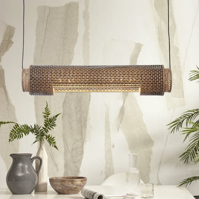 Pitkä bambusta valmistettu Bhutan-riippuvalaisin, jossa on kaksi pistorasiaaBhutan-riippuvalaisin on valmistettu bambusta, ja se soveltuu erityisen hyvin pitkänomaisen olohuoneen tai ruokapöydän valaisemiseen. Pyöreästä katoksesta lähtee kaksi 90° kulmassa olevaa tekstiiliripustusta, jotka yhdessä varjostimen kanssa muodostavat kolmion muodon. Valonlähde on sijoitettu varjostimen kumpaankin päähän. Valo säteilee lempeästi ympäristöön ja korostaa riippuvalaisimen luonnollista ilmettä.Tietoa Good & Mojo:- kestävä, sosiaalinen brändi - suuri osa valaisimista on käsityönä valmistettuja käsityöläisten toimesta Vietnamin pienissä yhteisöissä- kestävät materiaalit on valmistettu Kaakkois-Aasiassa runsaasti esiintyvistä kasveista- jokaisesta myydystä valaisimesta WakaWaka-säätiö saa lahjoituksen, ja lisäksi istutetaan puu Eden Reforestation Projects -hankkeiden kautta