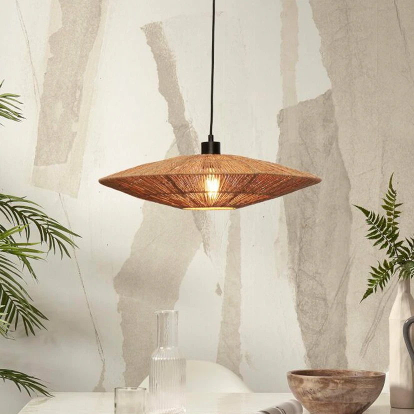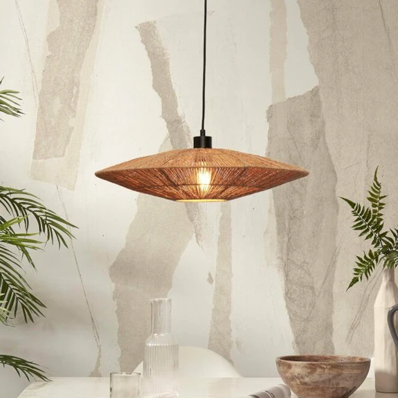 Litteä Iguazu-riippuvalaisin, jossa on käsintehty juuttivarjostinIguazu-riippuvalaisin on ihanteellinen lisä niin olohuoneeseen kuin makuuhuoneeseen tai ruokasaliinkin. Varjostin on valmistettu juutista ja tuo siten huoneeseen luonnollisen ja kodikkaan tunnelman. Jokainen riippuvalaisin on käsintehty ja siksi ainutlaatuinen. Yksityiskohtiin kiinnitetty huomio ja huolellisuus valmistuksessa tekevät riippuvalaisimesta erityisen valonlähteen, joka edistää myös kestävyyttä. Tietoa Good & Mojo:- kestävä, sosiaalinen brändi - suuri osa valaisimista on käsityönä tehty käsityöläisten toimesta Vietnamin pienissä yhteisöissä- kestävät materiaalit on valmistettu kasveista, joita on runsaasti Kaakkois-Aasiassa- jokaisesta myydystä lampusta WakaWaka-säätiö saa lahjoituksen, ja lisäksi istutetaan puu Eden Reforestation Projects -hankkeiden kautta