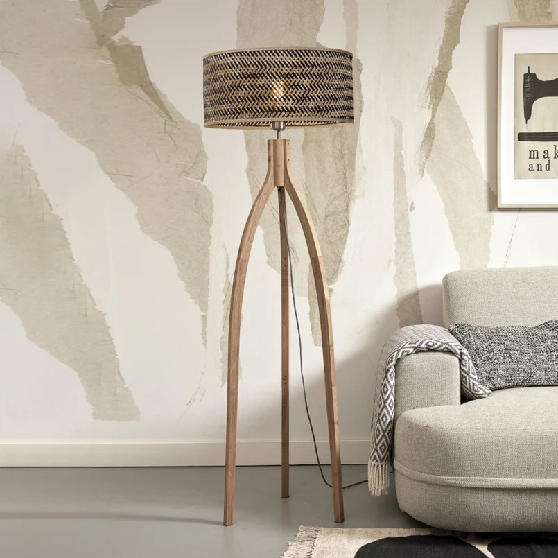 Kolmijalkainen lattiavalaisin Java, jonka runko ja varjostin on valmistettu bambustaLattiavalaisin Java tekee vaikutuksen luonnonmateriaaleillaan ja luo viihtyisän tunnelman olohuoneeseen. Runko on valmistettu bambusta, ja se herättää huomiota erityisellä kolmijalan muodollaan. Pyöristetty varjostin on myös valmistettu bambusta, ja se säteilee valoa lempeästi ja häikäisemättä ympäristöön. Java sopii mainiosti valonlähteeksi esimerkiksi olohuoneeseen. Lattiavalaisin kytketään päälle ja pois päältä kaapeliin integroidulla jalkakytkimellä. Tietoa Good & Mojo:- kestävä, sosiaalinen brändi - suuri osa valaisimista on käsityötä käsityöläisten toimesta Vietnamin pienissä yhteisöissä- kestävät materiaalit kasveista, joita on runsaasti Kaakkois-Aasiassa- jokaisesta myydystä valaisimesta WakaWaka-säätiö saa lahjoituksen, ja lisäksi istutetaan puu Eden Reforestation Projects -hankkeiden kautta