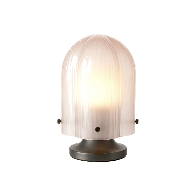 GUBI Seine pöytävalaisin, antiikkimessinkiä, korallipinkkiä lasia