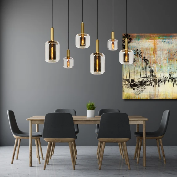 Joanet-riippuvalaisin: eleganssi kohtaa toiminnallisuuden savulasissa Joanet-riippuvalaisin kuusivaloisen muotoilunsa ja tyylikkään savulasinsa ansiosta on tyylikäs lisä mihin tahansa olohuoneeseen tai ruokailuhuoneeseen. Valaisimessa yhdistyvät tyylikkyys ja toiminnallinen valaistus, ja se luo ilmapiirin, joka kutsuu sekä rentoutumaan että seurustelemaan. Vaikka himmennin ei sisälly toimitukseen, Joanet-riippuvalaisimen kirkkautta voidaan säätää yksilöllisesti ulkoisella himmentimellä halutun tunnelman luomiseksi. Viehättävän ulkonäkönsä ja valon säätömahdollisuuden ansiosta tämä valaisin on minkä tahansa huoneen kohokohta.