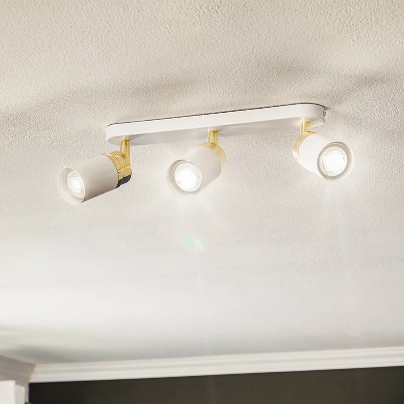 Kattokohdevalo Rondo valkoinen/kulta, 3-lamppuinen