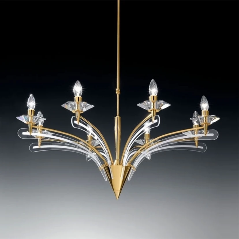 Kattokruunu ICARO, kristallilasi, 8 lamppua, kulta