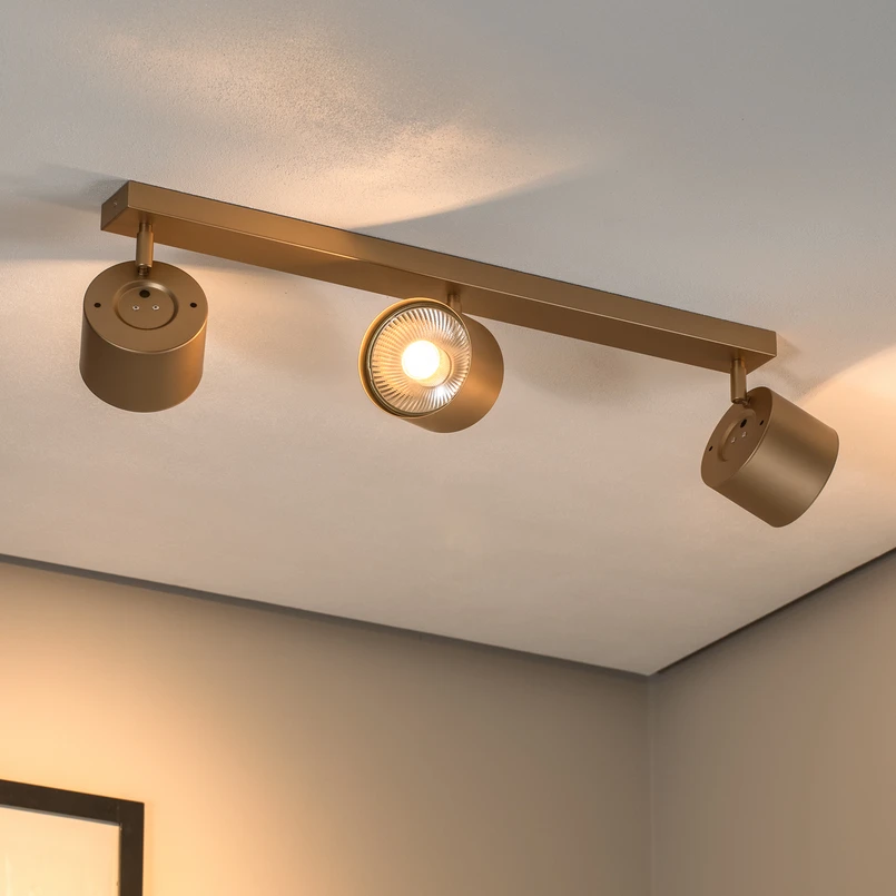 Säädettävä 3-lamppuinen kattospotti Chloe kullalla hurmaa modernilla ulkonäöllään ja korkealaatuisella teräsrakenteellaan. Kultaiset värit antavat jokaiselle huoneelle elegantin ilmeen, kun taas 3-lamppuinen rakenne mahdollistaa tasaisen ja tehokkaan valaistuksen. Erityisen huomionarvoista on muotoilun joustavuus, joka mahdollistaa valonlähteiden yksilöllisen suuntaamisen ja siten optimaalisen mukautumisen erilaisiin valaistustarpeisiin.