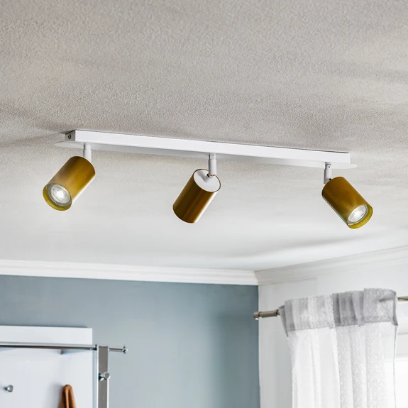 3-lamppuinen kattospotti Zen 3 valkoisena ja kultaisena yhdistää tyylikkään eleganssin ja toiminnallisen monipuolisuuden. Korkealaatuisesta teräksestä valmistettu moderni valaisin sopii saumattomasti erilaisiin oleskelutiloihin, kuten olohuoneeseen, makuuhuoneeseen, eteiseen ja ruokailuhuoneeseen. Valkoisen ja kultaisen värin yhdistelmä antaa jokaiselle huoneelle erityisen tunnelman ja luo harmonisen ilmapiirin.