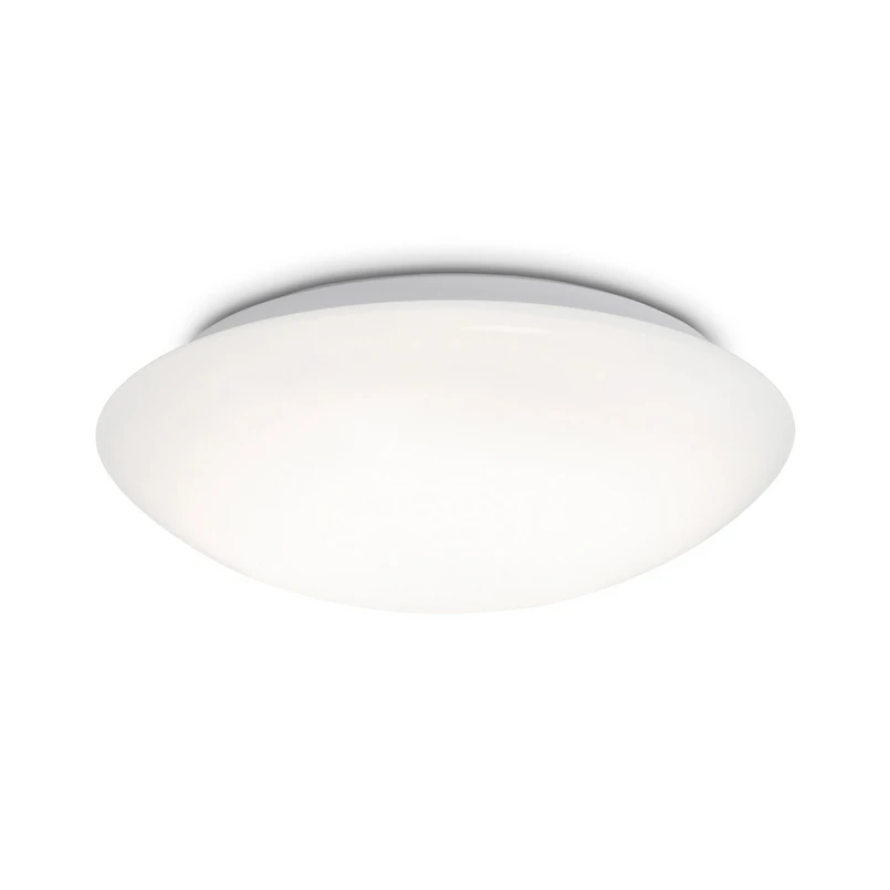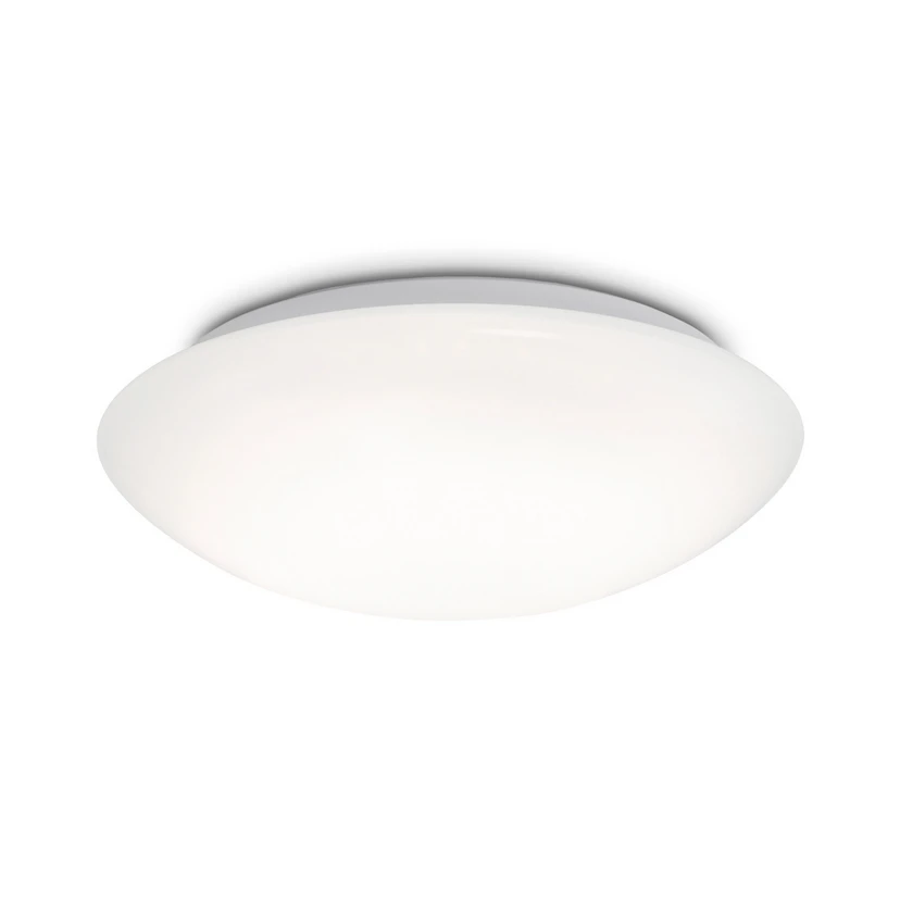 Elipso pyöreä LED-kattovalaisin, IP44, valkoinen yleisvalaistus, anturisäädöllä Elipso-kattovalaisin on erityisen monikäyttöinen suuren pinta-alan valkoiseen yleisvalaistukseen - roiskesuojan ansiosta jopa kylpyhuoneessa. Se on varustettu valkoisesta muovista valmistetulla pyöreällä, kuperalla kannella, joka hajottaa integroitujen LED-valojen valon tasaisesti. Jälkimmäiset voidaan myös kytkeä päälle automaattisesti sisäänrakennetun päivänvalo- ja liiketunnistimen ansiosta - Liiketunnistin voidaan aktivoida pysyvästi tai vain pimeällä - Tunnistuskulma 360°, kantama 8 m - Liiketunnistuksen käynnistysaika voidaan asettaa neljässä vaiheessa 5 s:sta 30 min:iin - Suojausluokka: IP44