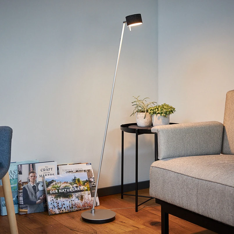 Yksinkertaisen muotoilunsa ansiosta CAI- maavalaisin sopii helposti olohuoneeseen lukulamppu tai miellyttävänä valaisin toimistossa. Alumiinin ja villahuovan yhdistelmä luo ainutlaatuisen ilmeen. Lampun jalustassa olevan himmentimen avulla kirkkaus mukautetaan täydellisesti vastaaviin tarpeisiin.