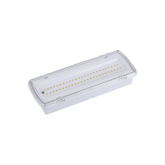 24 metrin näkyvyys LED-poistumisreittivalaisimella Wasen, IP65 Tämä Ledinon LED-poistumisreitti-/hätävalaisin Wasen soveltuu uppoasennukseen ja pinta-asennukseen, ja se toimitetaan suoraan, mukaan lukien sopiva asennuskehys ja opasteet. Mukana toimitetaan myös vaihdettava LiFePO 7,4 V/1,5 A -akku, joka mahdollistaa hätävalaistuksen käytön.