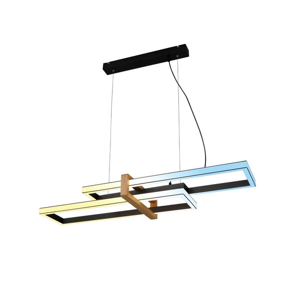 LED-riippuvalaisin 4768015 CCT-toiminnolla ja kaukosäätimellä Modernin muotoilun riipusvalaisin, jossa on kaksi suorakulmaista metallivarjostinta ja joka on varustettu ulkopuolelta ja alareunasta satinoidulla suojuksella ja sen takana himmennettävillä LED-valoilla, joissa on CCT-toiminto, on koristeltu puusta tehdyllä kehyksellä. Tämä kulkee poikittain porrastettujen varjostimien ympärillä. LED-riippuvalaisin on paitsi visuaalisesti myös valaistusteknisesti erikoisuus, sillä valoa voidaan säätää täysin joustavasti mukana toimitetun kaukosäätimen avulla. Valon väriä voidaan säätää kaukosäätimellä lämpimän valkoisesta (2700 K) päivänvaloon (6500 K), ja sitä voidaan myös himmentää portaattomasti; lisäksi voidaan valita ajastintoiminto.