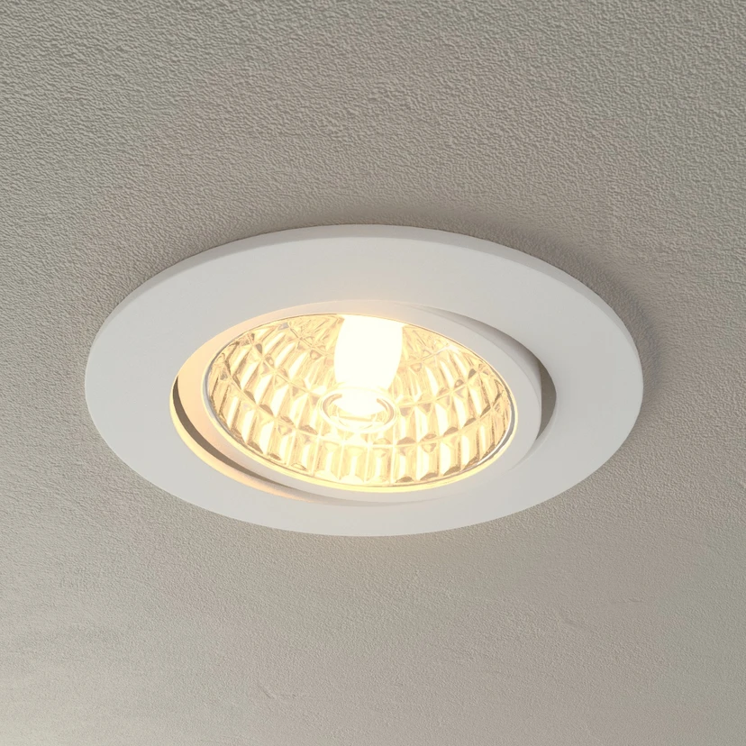 Pyöreä Rico LED- uppoasennusvalaisin matalalla syvyydelläRico LED- uppoasennusvalaisin on vain 3 cm syvä ja sopii 6,8 cm:n vakiohalkaisijansa ansiosta olemassa oleviin vakioporareikiin, joten sillä on helppo korvata olemassa olevat uppoasennetut valaisimet. Hybridioptiikan ansiosta valonheittimen ulkonäkö muistuttaa halogeenilamppua. Valettuun alumiiniin upotettava valaisin on 30° kääntyvä, ja se säteilee lämpimän valkoista valoa 2 800 K:n lämpötilassa, joka tekee vaikutuksen erittäin hyvällä värintoistoindeksillä Ra 95, sillä kaikki värit toistuvat erittäin kirkkaina ja luonnollisina. Upotettavan valonheittimen kytkemiseen tarvitaan LED-ajuri, joka on saatavana lisävarusteena.