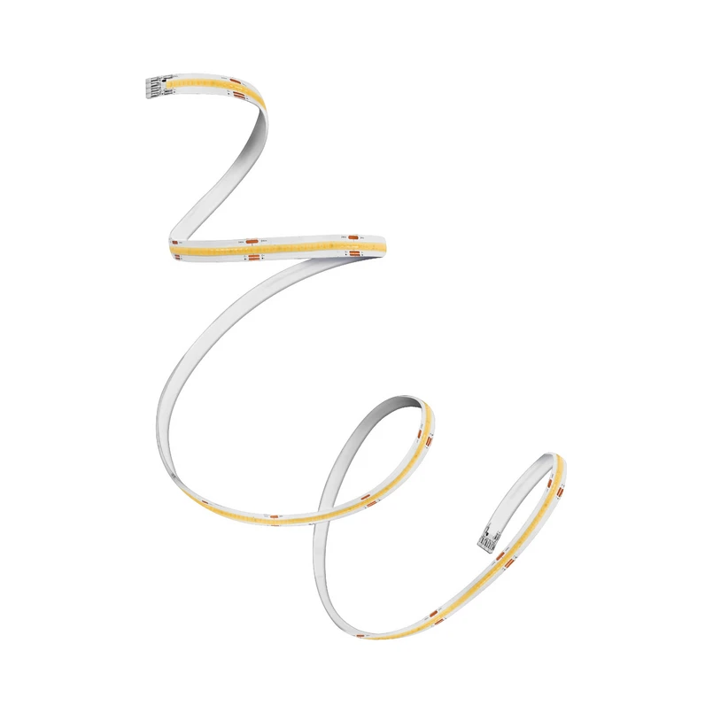 LED-nauha Flex COB, IP20, lämmin valkoinenTämä nauha tarjoaa COB-lediensä ansiosta jatkuvan valolinjan sisätiloissa. Lyhennettävyytensä ja joustavuutensa ansiosta LED-nauha voidaan mukauttaa täydellisesti työmaalla vallitseviin olosuhteisiin. Kytkimellä, kaapelilla, mukaan lukien pistotulppavirtalähde, ja kiinnitysmateriaalilla varustettu varustus takaa mutkattoman käytön ja asennuksen.
