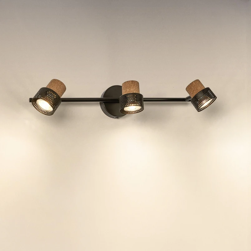 Kolmivaloinen Cork LED-kattokohdevalaisin himmennettävillä GU10-valonlähteillä Pitkä Cork LED-kattokohdevalaisin esitetään kauniissa materiaaliyhdistelmässä. Runko, mukaan lukien pyöreä katos ja rei'itetyt varjostimet, on valmistettu mattapintaisesta teräksestä, mutta valaisimen takaosat on päällystetty korkilla. Valonheitin toimitetaan himmennettävällä GU10 LED-valonlähteellä, ja valonheittimet voidaan sekä kääntää että kääntää. Se sopii erinomaisesti sisätiloihin, esimerkiksi eteisiin ja käytäviin, sisääntulotiloihin, olohuoneisiin, keittiöihin ja moneen muuhun kohteeseen - monipuolinen, räätälöitävissä oleva ja kestävä vaihdettavien LED-lamppujen ansiosta - korkealaatuinen mattapintainen kotelo - himmennettävät OSRAM-lamput sisältyvät toimitukseen - helppo asennus - täydelliset kiinnitys- ja liitäntätarvikkeet sisältyvät toimitukseen
