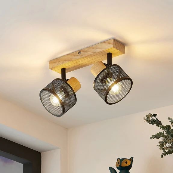 Lindby Evinora -kattokohdevalo puuta, 2-lamppuinen