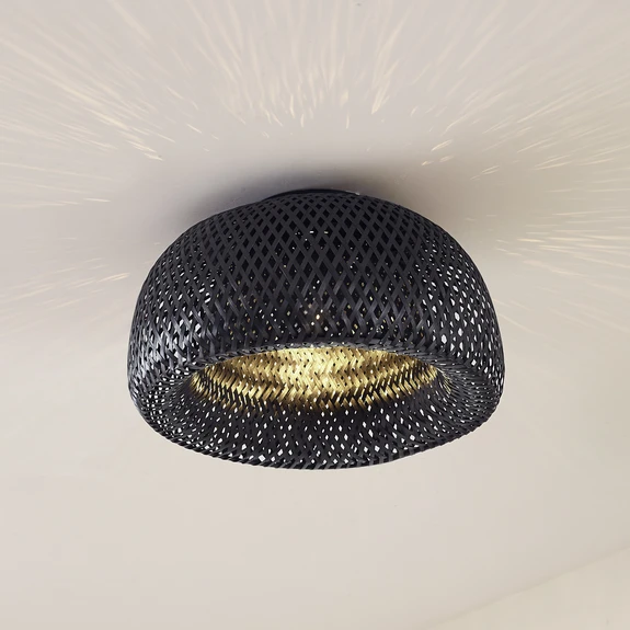 Eskil-kattovalaisin, jossa on musta, kudotusta bambusta valmistettu varjostin Eskil-kattovalaisimessa yhdistyvät moderni muotoilu ja maalaismainen vivahde, mikä luo sekä nykyaikaisen että viihtyisän tunnelman. Musta väri muodostaa harmonisen kontrastin luonnollisen bambumateriaalin kanssa, mikä tekee tästä valaisimesta katseenvangitsijan missä tahansa huoneessa. Olipa kyseessä ruokailutila, olohuone tai eteinen, Eskil-kattovalaisin asettaa tyylikkäitä korostuksia ja antaa miellyttävän valaistuksen. Valaisin sopii käytettäväksi ulkoisen himmentimen kanssa, joten valon voimakkuutta voidaan säätää yksilöllisesti ja luoda oikea tunnelma joka tilanteeseen. Olipa kyse sitten viihtyisästä yhdessäolosta tai valonlähteestä tuottavina tunteina - tämä kattovalaisin mukautuu joustavasti tarpeisiisi (huomaa, että ulkoinen himmennin on ostettava erikseen).