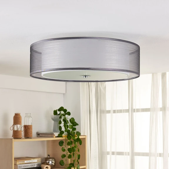 Tobia Tobia-kangaskattovalaisimessa yhdistyvät valkoinen lampunvarjostin, jossa on tiheä rakenne, ja harmaasta organza-kankaasta valmistettu lampunvarjostin, ja tuloksena on hienostunut ilme, joka sopii hyvin moneen moderniin sisustukseen. Lampunvarjostimen alapuolta täydentää lasinen diffuusori, joka antaa mahdollisimman pehmeän valon.