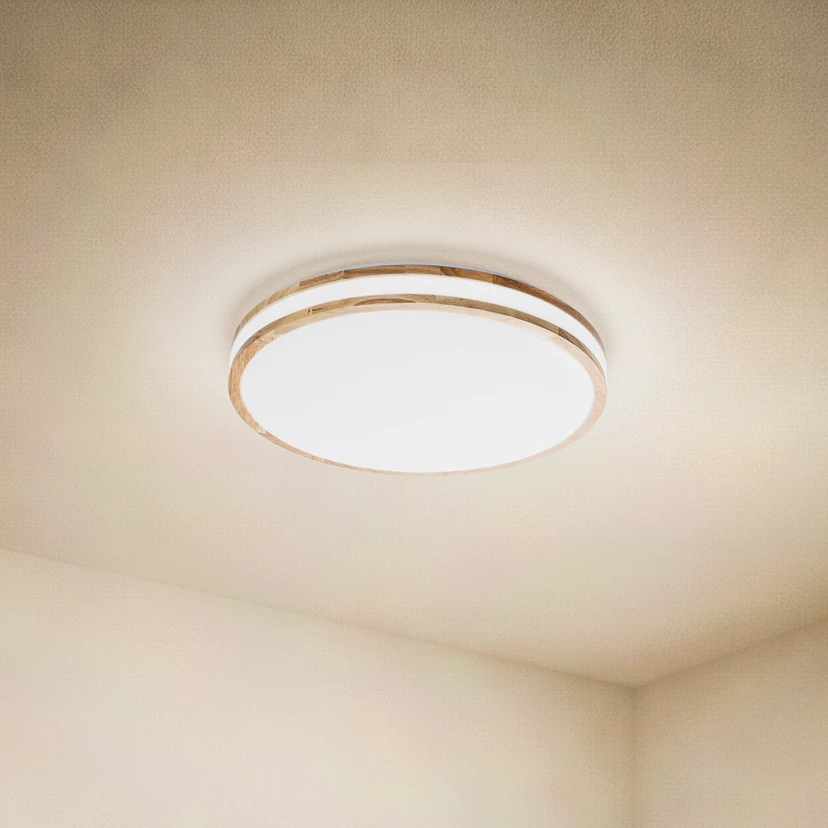 Houkutteleva Emiva LED-kattovalaisin viihtyisässä puumaisemassa Emiva LED-kattovalaisin tekee vaikutuksen paitsi klassisella pyöreällä muodollaan ja litteällä muotoilullaan, joka voidaan integroida täydellisesti erilaisiin huoneisiin, myös tekniikallaan. Valaisimeen kiinteästi asennetut kirkkaat LEDit ovat erittäin taloudellisia virrankulutuksen suhteen. Niiden kirkkautta ja valon väriä voidaan tarvittaessa säätää portaattomasti mukana toimitettavalla kaukosäätimellä. Ajastintoiminnon ansiosta valaisin voi olla päällä 30 minuuttia ennen kuin se sammuu automaattisesti - erittäin käytännöllistä ilta-aikaan. Valaisimen runko on valmistettu puusta, ja se voi antaa kodikkaan tunnelman luonnollisella kosketuksella.