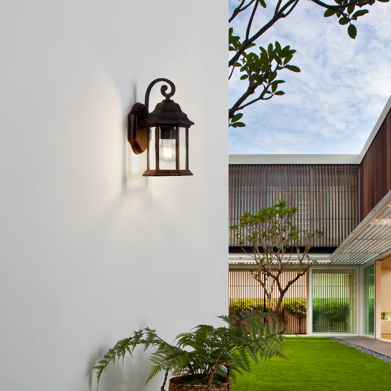Alumiinista ja lasista valmistettu lyhdyn muotoinen ulkoseinävalaisin Daaje Tämän seinävalaisimen avulla voit viettää aikaa parvekkeella, terassilla tai puutarhassa myös pimeän tultua, ilman että sinun tarvitsee luopua viihtyisästä valaistuksesta. Valoa voidaan himmentää mielialan mukaan, jos valaisin yhdistetään ulkoiseen himmentimeen (ei sisälly toimitukseen). Alumiinista ja lasista valmistettu seinävalaisin on optimoitu siten, että siihen voidaan asentaa E27-kannalla varustettuja valonlähteitä. Ruosteen värinen ulkoseinävalaisin kylvää puutarhasi tai pihatieltäsi miellyttävään valoon valonlähteen avulla. Tässä seinävalaisimessa korkea toiminnallisuus kohtaa upean muotoilun.