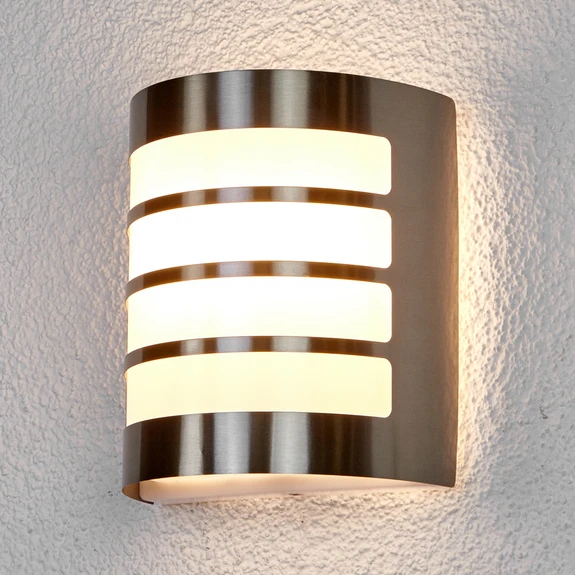 Ruostumattomasta teräksestä valmistettu ulkoseinävalaisin Noyan, kaunis raidallinen muotoilu