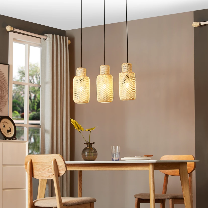 Kolmivaloinen Venora-riippuvalaisin pitkänomaisella muotoilulla - täydellinen ruokapöydän yläpuolelle Tämä valaisin sopii täydellisesti kotiisi. Kaikki Lindby-merkin ominaisuudet ja kohokohdat on koottu tähän riippuvalaisimeen. Sisustusvalaisin sopii yhteen lähes minkä tahansa tyylin kanssa ja on erinomaisen muotoilunsa ansiosta minkä tahansa huoneen kohokohta. Se luo kauniin tunnelman ja on erityisen tehokas missä tahansa tilassa. Riippuvalaisin mustalla ja bambulle tyypillisellä puun värillä tuottaa paljon iloa, ja se on helppo integroida erilaisiin sisustustyyleihin. Viimeistele kotisi tunnelmallinen valaistus tällä valaisimella.