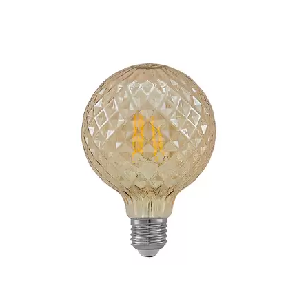 E27 G95 LED-pallolamppu 4W, lämmin valkoinen, himmennettävissä vaiheen katkaisulla - koristeellinen filamenttilamppu, jossa on lamellipinta, lasivarjostin meripihkainen