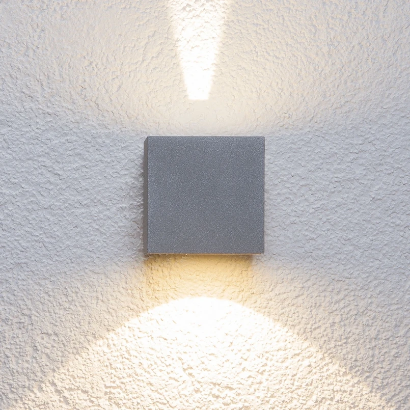 Jarno-ulkoseinävalaisin, jossa on voimakas valonlähde ja Cree-merkkiset LEDit Tämän LED-ulkoseinävalaisimen pinta on väriltään hyvin ajaton. Jos katsot tarkemmin, huomaat, että tämä ei pidä paikkaansa vain tässä suhteessa, sillä kuution muoto on myös yksi yleisimmistä geometrisista muodoista, jota voidaan käyttää lähes missä tahansa tilassa ilman, että tarvitsee miettiä, sopiiko tämä ilme. Niin pitkälle, niin hyvin - visuaalisesti ulkoseinävalaisin on hyvin huomaamaton valonlähde. Mutta entäpä valaistusvaikutus? Aivan oikein, se ei ole aivan tavanomainen. Koska seinävalaisin on asennettu ulos, voit usein nähdä jo kaukaa, kuinka upea on Jarnosta lähtevä valoefekti. Tämä selittyy paitsi kaksinkertaisella valonlähteellä, myös sillä, miten valo loistaa, sillä lämmin valkoinen hehku karkaa alaspäin melko leveässä, hieman pyöristyvässä kulmassa, kun taas ylhäältä tulee esiin vain kapea kaistale. Jos haluat muuttaa tätä, voit käyttää mukana toimitettua ylimääräistä valoristikkoa. Tällöin seuraavat valokuviot ovat mahdollisia: - kapea ylhäällä ja leveä alhaalla - leveä ylhäällä ja alhaalla - kapea ylhäällä ja alhaalla - leveä ylhäällä ja kapea alhaalla