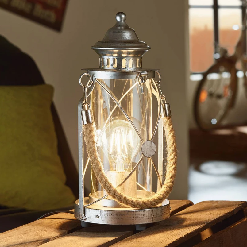 Antiikkihopeanvärisen, lyhtymäisen Kirian pöytävalaisimen muotoilu muistuttaa menneistä ajoista. Lasisylinteri on istutettu metallirunkoon ja sen yläosassa on ripustusnyöri. Siellä, missä ennen pidettiin kynttilään, on nykyään elektroninen valonlähde huoneen tunnelmallista valaistusta varten. Valo kytketään vetokytkimellä. Päällä tai pois päältä - lyhtymäinen pöytävalaisin on aina katseenvangitsija.