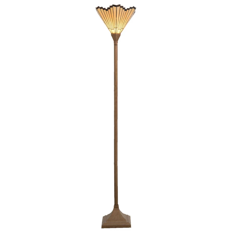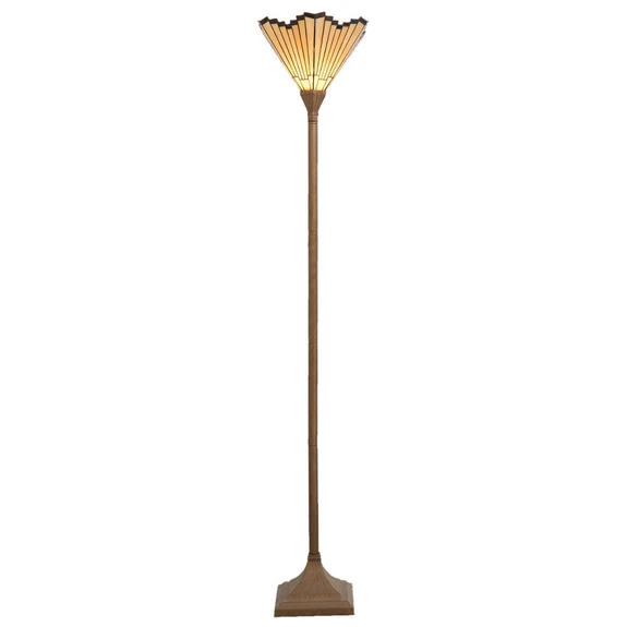 Lattiavalaisin Marla, jossa on ylellinen lampunvarjostinKoristeellisen Marla-lattiavalaisimen lasivarjostin on muotoiltu tuulettimen tavoin. Varjostin säteilee valon suoraan ylöspäin, minkä vuoksi valaisinta voisi kutsua myös kattopesuriksi. Viuhkan muotoinen varjostin saa valaisimen näyttämään hyvin filigraaniselta ja ekstravagantilta. Nelikulmainen metallijalusta antaa sille turvallisen jalustan.