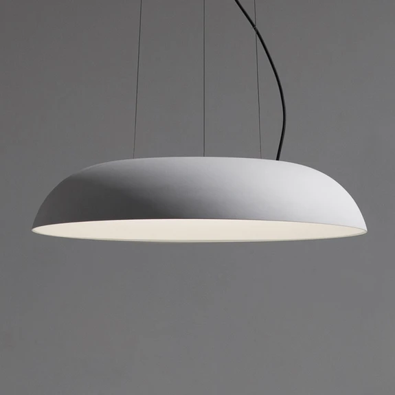 Tämä roikkuu lamppu yhdistyvät siisti muotoilu ja miellyttävä valoa ja on siksi erinomainen valinta pöydän tai aluevalaistus moderneissa olohuoneet ja oleskelutiloja. Sävyn rakenne on muotoiltu hieman kaarevaksi hupuksi, jossa on keskellä oleva aukko ja joka on valmistettu väripäällysteisestä alumiinista. Opaalimetakrylaatista valmistettu hajotin vie koko sisäpuolen, joka hajottaa tasaisesti integroitujen LEDien valoa ja varmistaa alapuolisen alueen laajan, hajavalaistuksen. Valotehoa voidaan valinnaisesti säätää ulkoisen DALI / Push-ohjaimen avulla.