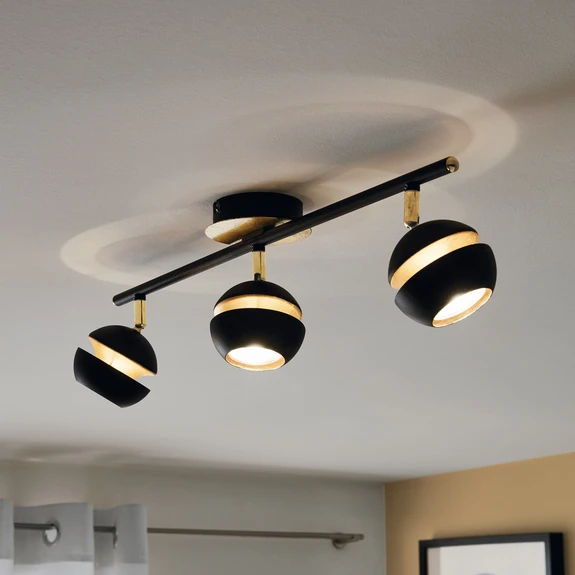 Kolmilamppuinen Nocito LED-kattovalaisin, mustakultainen malli