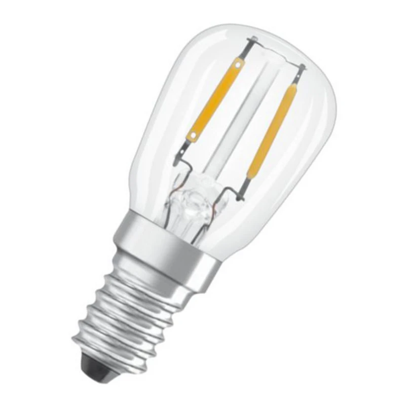 OSRAM E14 1,6W LED-lamppu T26 hehkulanka kirkkaalla lasilla jääkaappiin tai pieniin lampunvarjostimiin, valon väri 2400 K erittäin lämmin valkoinen