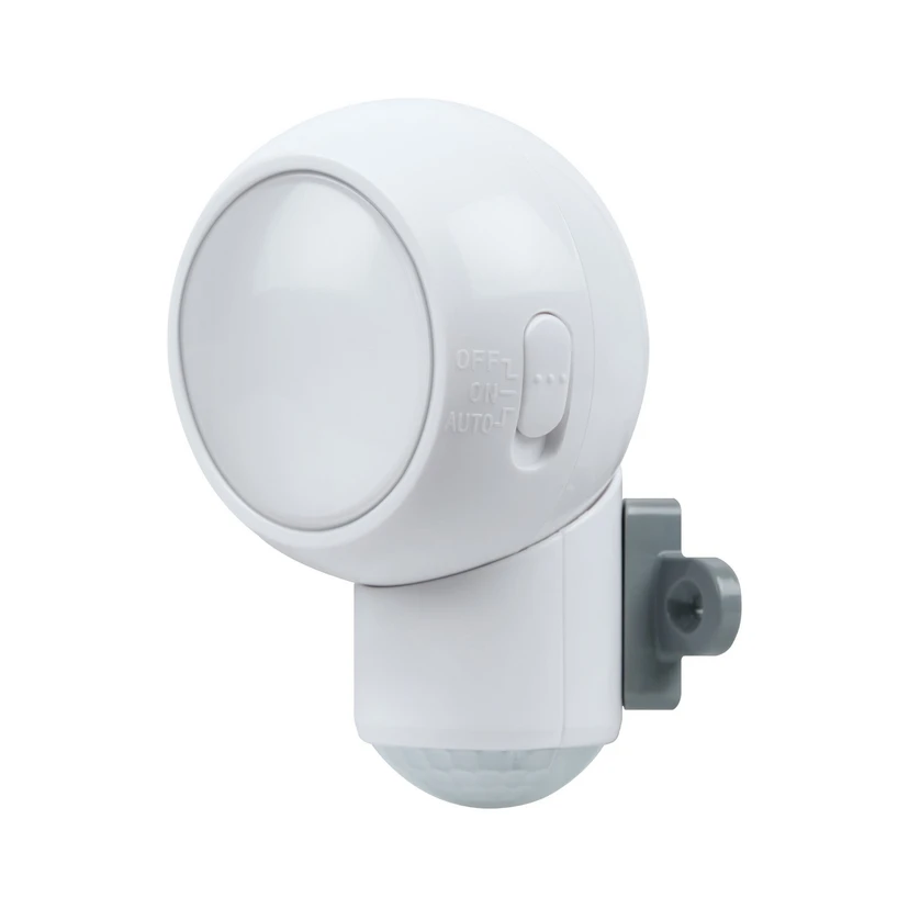Pieni apulainen. Tuotteen ominaisuudet: Paristokäyttöinen, pöly- ja roiskevesisuojattu valaisin. Käännettävä pää monipuoliseen käyttöön. Integroitu liiketunnistin. Tuotteen edut: Siirrettävissä irrottamalla kiinnikkeestä. Tekniset ominaisuudet: Ruuvit, liima- tai magneettikiinnike.