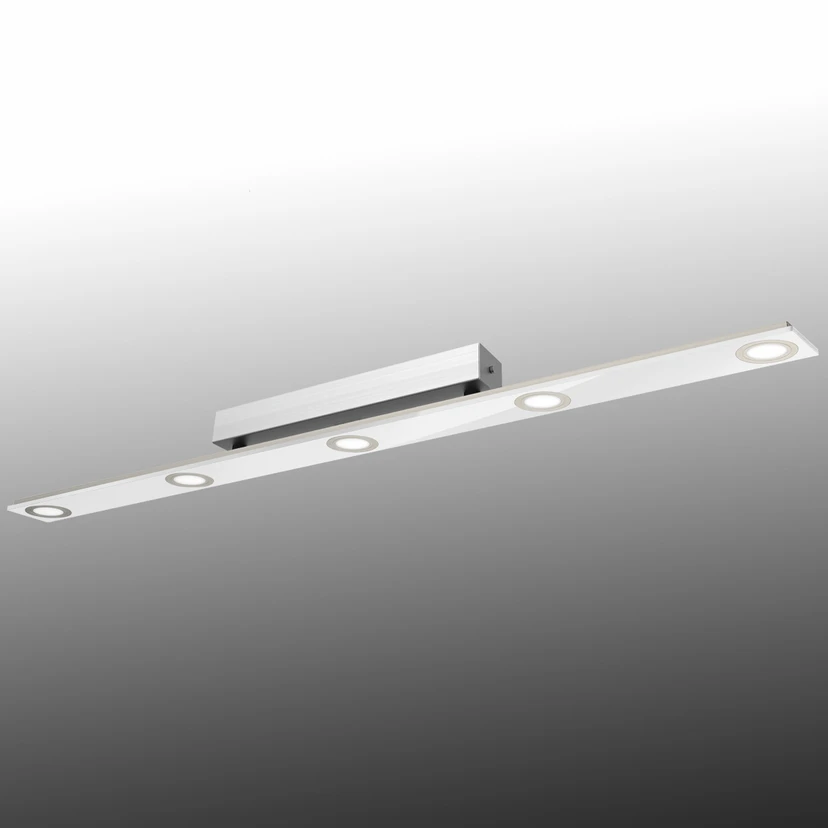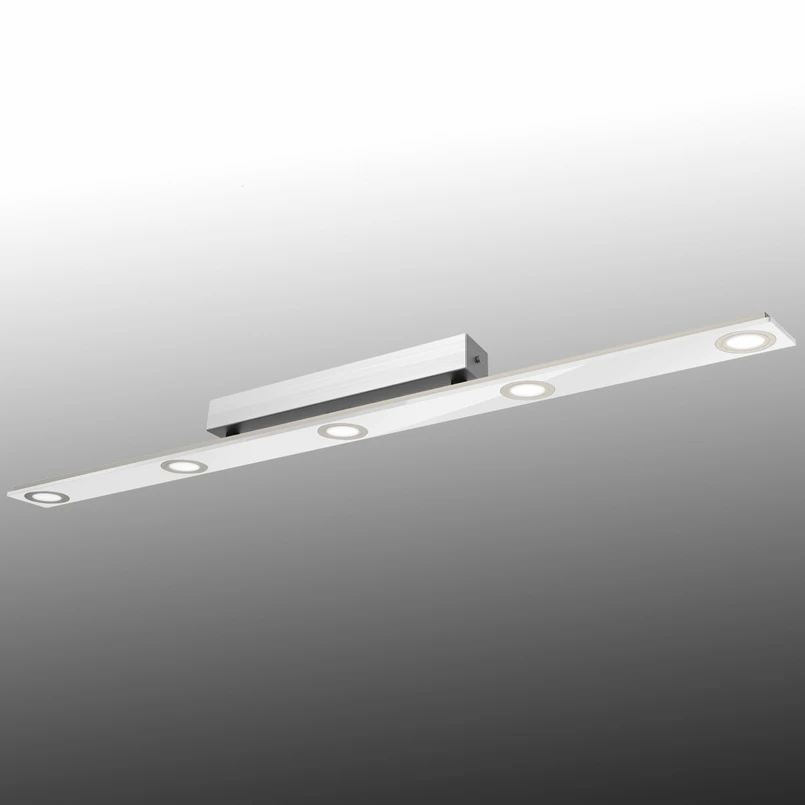 Pano-kattolampun runko on tehty ruostumattomasta teräksestä ja varustettu akryylireunuksilla. Levyyn on upotettu viisi pyöreää LED-moduulia, joiden opaalinväriset diffuusorit huolehtivat erittäin tasaisesta ja homogeenista valaistuksesta. Ra 85 -värintoistoindeksillä nämä LEDit soveltuvat erittäin hyvin asuintilojen valaistukseen. Olohuoneessa, käytävällä tai lastenhuoneessa LED-kattovalaisin tarjoaa lämpimän valkoista yleisvalaistusta, joka kirkastaa tilaa energiatehokkaasti.