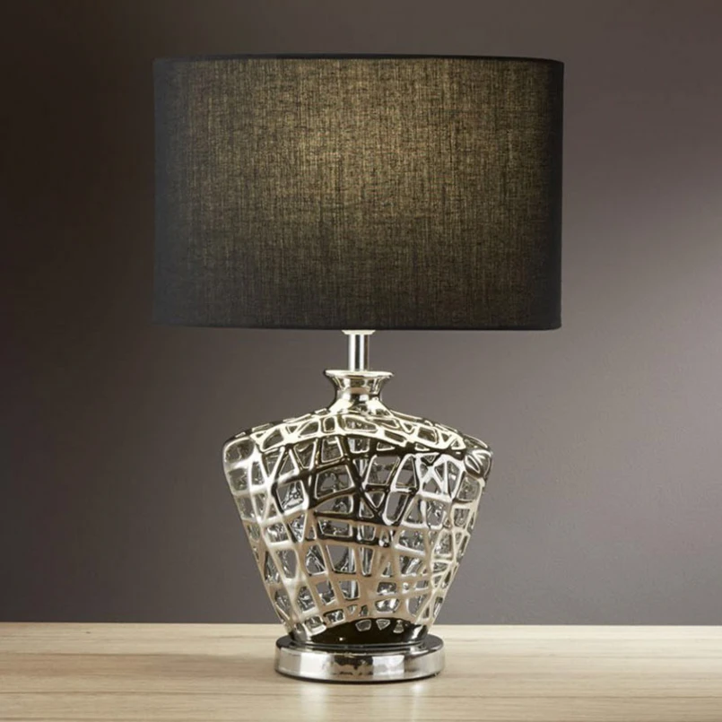 Tyylikkäässä ja tyylikkäässä Network-pöytävalaisimessa on musta tekstiilivarjostin. Tätä täydentää erityinen kromipinnoitetusta keraamisesta lampunjalusta. Sipulimaisen runko, joka on hyvin avoin ja ilmava ja siksi koristeellinen katseenvangitsija näyttää ainutlaatuisen mesh. Network-pöytävalaisin soveltuu siten kohdennetuksi koriste-esineeksi sekä lisävaloiksi, joka levittää kodikkaan ja miellyttävän valon iltaisin. Tämä tyylikäs lamppu, joka on sijoitettu lipastolle, sivupöydälle, senkkiin tai jopa ikkunalaudalle, herättää taatusti kaikkien huomion.