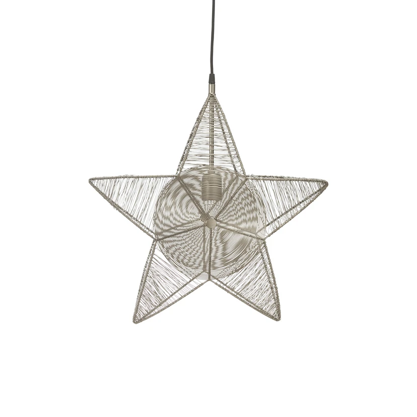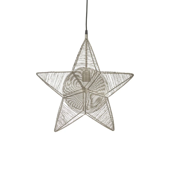 Viisikärkinen koristetähti Rigel on valmistettu metallista Joulutähti Rigel on käsintehty metallista ja vankka muotoilu: Se levittää kaunista valoa ja luo taloon ihanan joulutunnelman. Alareunassa olevan pienen aukon avulla pääset tähden sisälle. Musta tekstiilikaapeli on n. 3,5 m pitkä ja varustettu EU-pistokkeella ja E27-pistorasialla. Lamput eivät sisälly toimitukseen - ne voi tilata erikseen lisävarusteiden kautta.