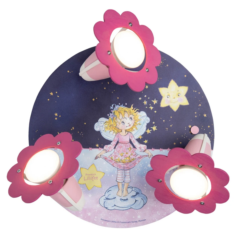 Princess Lillifee Good Night Star Magic - Lastenhuoneen kattovalaisin kolmella siirrettävällä valonheittimellä Täydellinen mihin tahansa lastenhuoneeseen, Saksassa valmistettu laadukas Princess Lillifee Good Night Star Magic -kattovalaisin tarjoaa riittävästi valoa ja kirkkautta. Huoneen jokainen nurkka on kirkkaasti valaistu siirrettävien valonheittimien ansiosta, jotka ovat sopivasti kukkien muotoisia ja väriltään ruusun ja vaaleanpunaisen värisiä. Kattopaneeli on myös kuvitettu lapsiystävällisesti, ja siinä on kaunis motiivi Prinsessa Lillifee -lastensarjasta. Sternenzauber voidaan asentaa sekä kattoon että seinälle, joten se sopii erinomaisesti pienille prinsessoille ja niille, jotka haluavat tulla sellaisiksi.